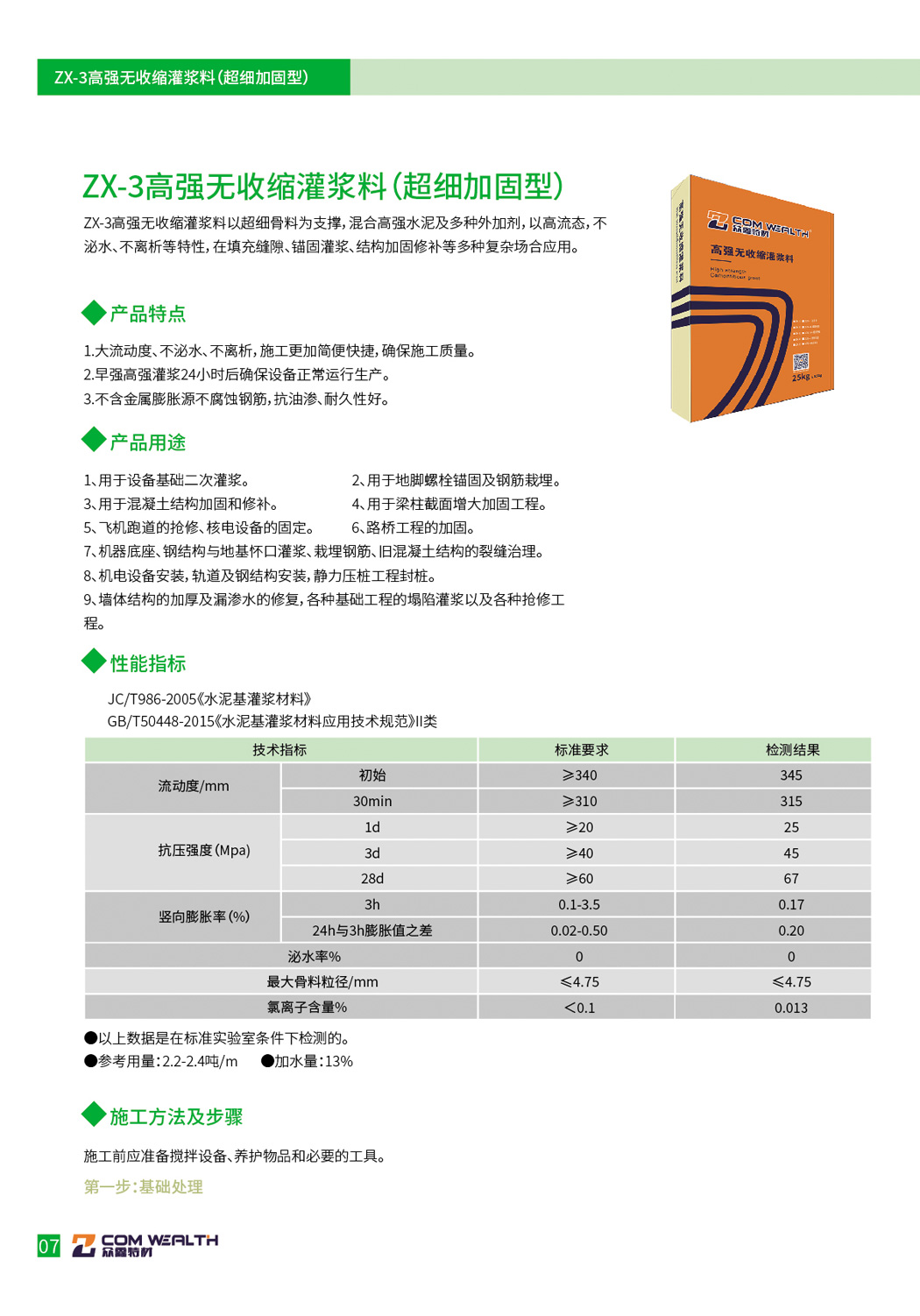 ZX-3/CGM-340高強無收縮灌漿料(超細加固型)