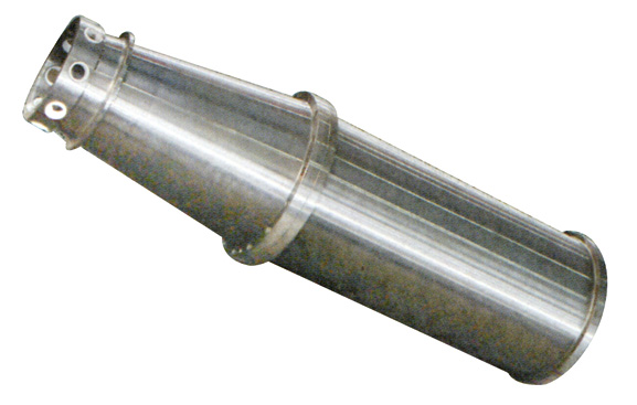 無孔轉(zhuǎn)鼓內(nèi)套裝有目心的卸料螺旋,兩者高速同向旋轉(zhuǎn)的同時(shí),又具有一定的轉(zhuǎn)速差,該轉(zhuǎn)速差由傳動(dòng)系統(tǒng)及差速器產(chǎn)生。懸浮液由進(jìn)料管進(jìn)入輸料螺旋內(nèi)腔。經(jīng)加速后進(jìn)入轉(zhuǎn)鼓內(nèi),在離心力的作用下,密度較大的固相顆粒物沉降到轉(zhuǎn)鼓內(nèi)壁,形成沉渣環(huán)層,并被卸料螺旋不斷送到轉(zhuǎn)鼓小端而排出轉(zhuǎn)鼓外,澄清的液體不斷從轉(zhuǎn)鼓大端的溢流口排出轉(zhuǎn)鼓外,從而實(shí)現(xiàn)懸浮液的固體分離。