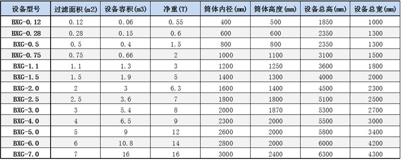 平板式過(guò)濾洗滌干燥三合一 技術(shù)參數(shù)表